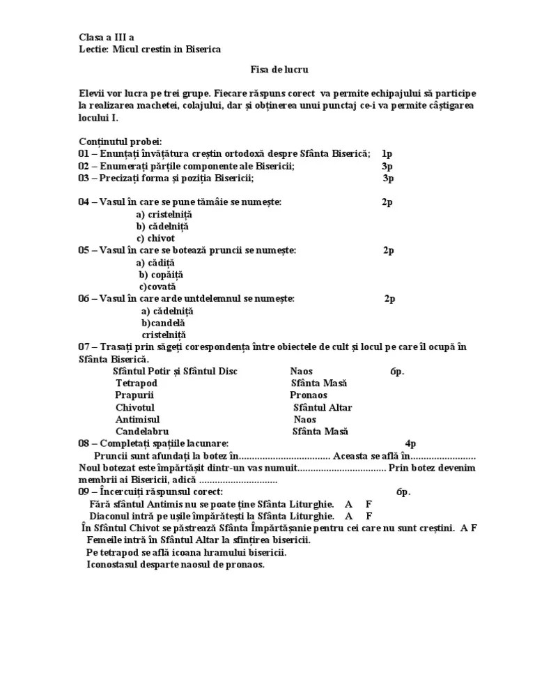 February 24, 2008, 05:30:38 pm ». Cea mai mare bază online de materiale didactice. Planuri de lecţie, planificări, teste etc. Are si barem de corectare. 22.11.2020 · fisa de lucru_religie_clasa a iv a. Cea mai mare bază online de materiale didactice.